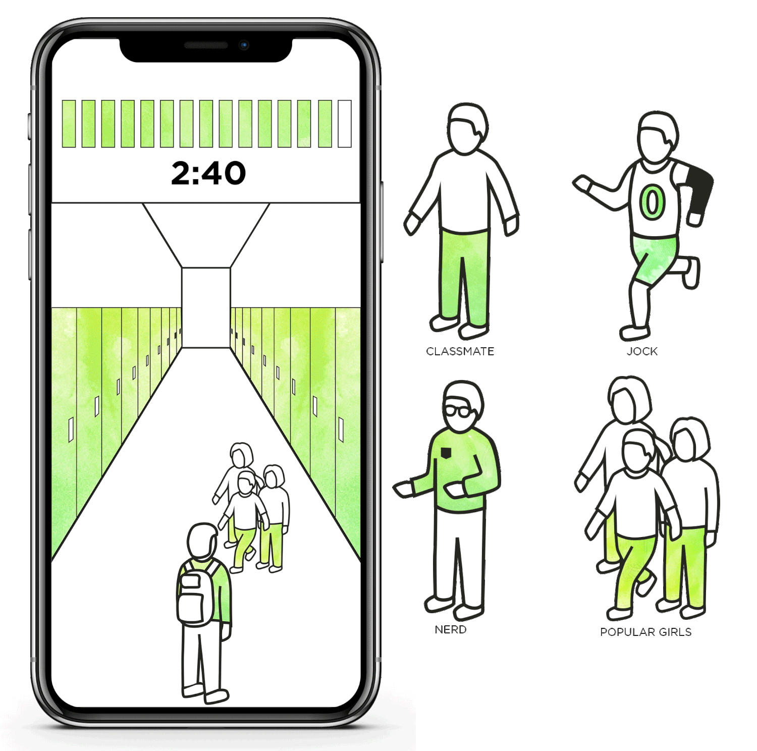 High school themed hazards along the way (Janitors, the Principle, leaky water fountain, you get the idea)