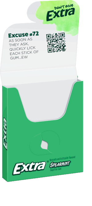 Each pack of Extra gum will come with a QR code to download the game and give a little advice on how to not give extra.